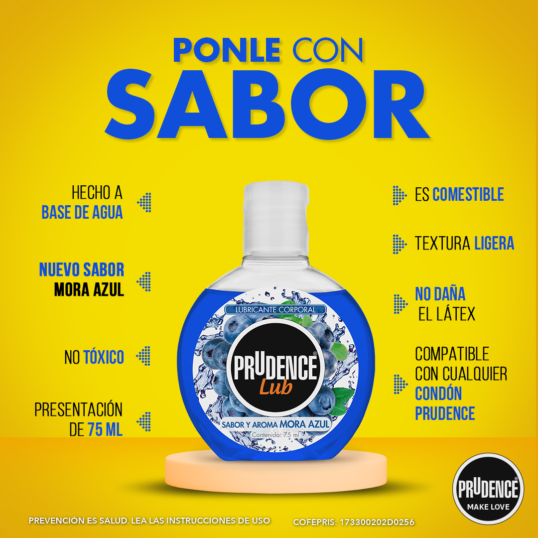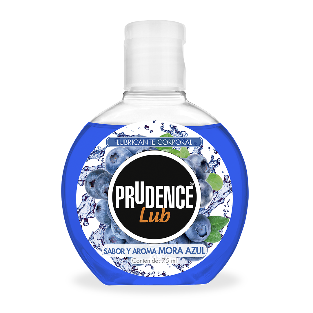 Prudence Lub Mora: lubricante sabor y aroma mora de 75 ml, comestible, textura ligera, base agua, libre de aceites, no tóxico, no daña el látex.