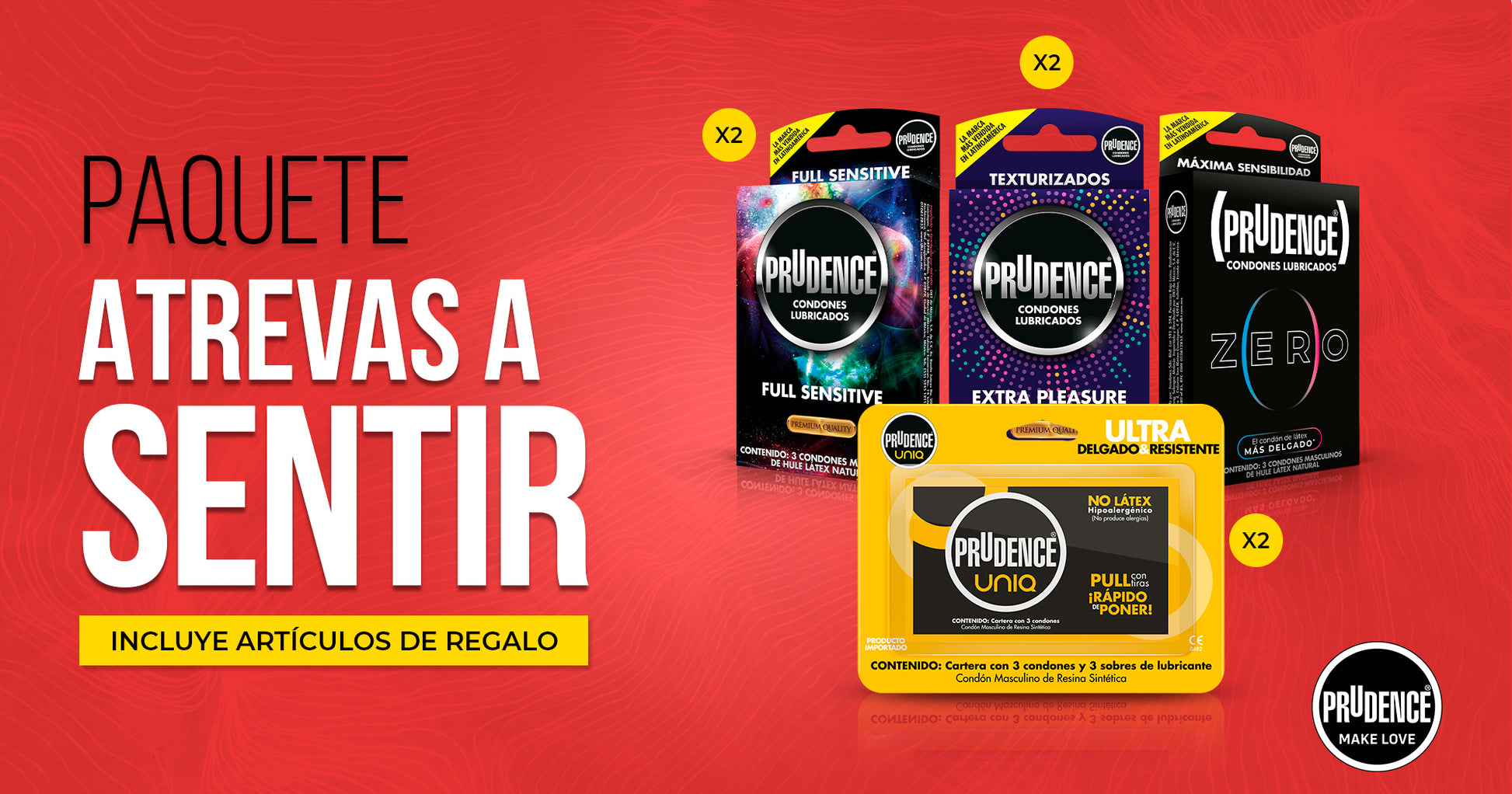 Incluye 2 Prudence Full Sensitive C/3, 2 Prudence Extra Pleasure C/3, 2 Prudence Zero C/3 y 2 Prudence Uniq.